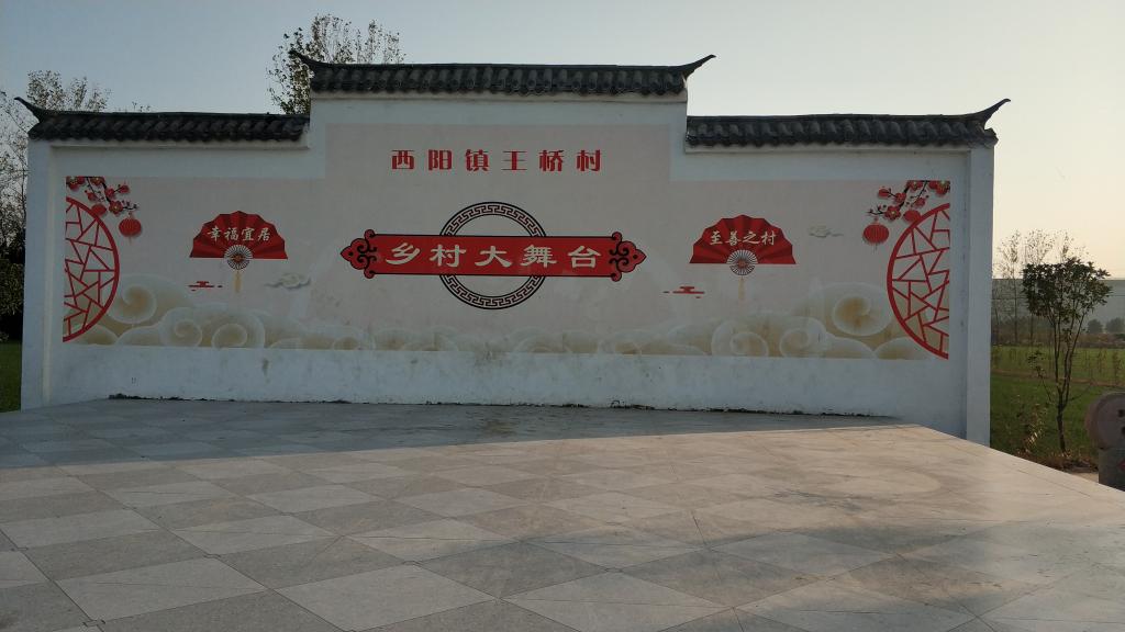 驻村工作队带领村两委干部,整合县财政资金和学校定点帮扶资金共计50万元,倾力打造王桥村村民文化广场。广场占地面积1000平米,入口之处竖起了2米高的文化石,广场正南搭起了乡村大舞台,舞台两侧将社会主义核心价值观雕砌在石磙磨盘之上。广场东侧修建了文化长廊和幸福亭,长廊两侧“仁义礼智信孝廉”宣传图册悬挂其上。广场竣工以来,每天吸引着村里的男女老少驻足休闲,老人们在文化长亭里下棋畅谈,少年们在篮球场地奔跑竞技,小商贩在广场旁卖起了玩具和小吃,县镇文化部门还定期为村民送来文化大戏。每到夜晚,广场灯光明亮,妇女们自发聚集起来跳起了热情的广场舞,好一派生机而又和谐景象。